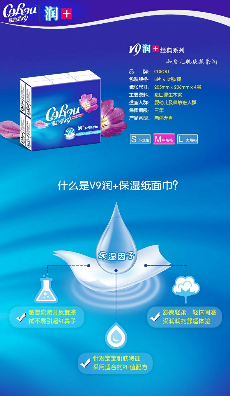 CoRou V9润+系列CoRou云柔系列白色木浆110抽
