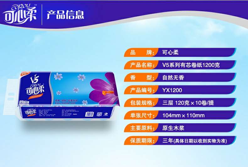 可心柔 V5系列CoRou云柔系列白色木浆60抽