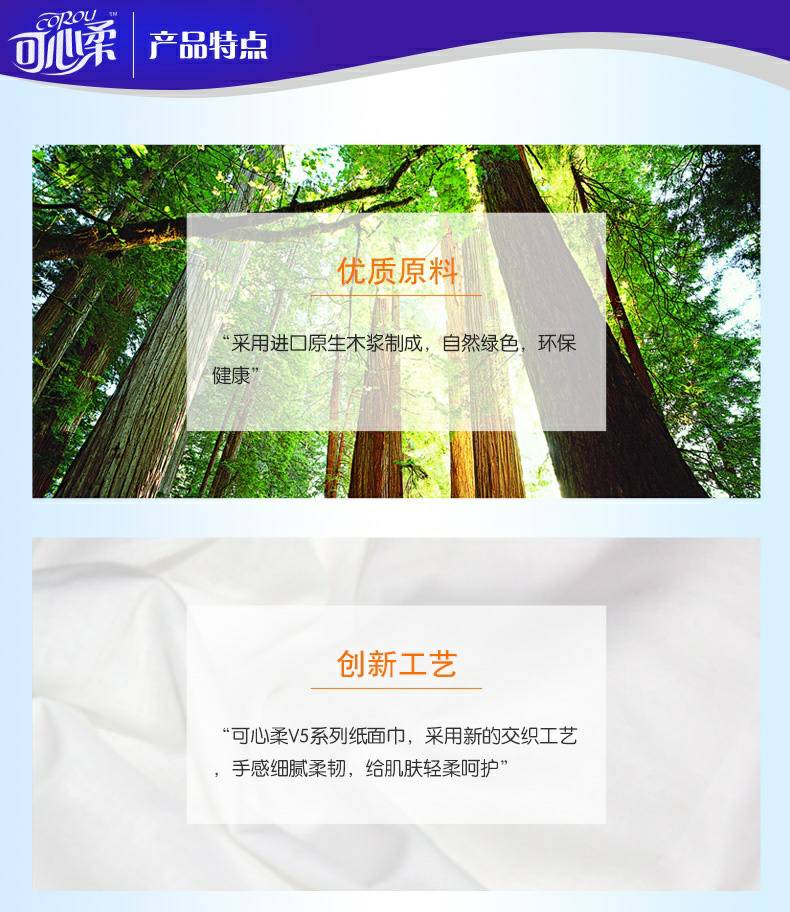 可心柔 V5系列CoRou云柔系列白色木浆40抽